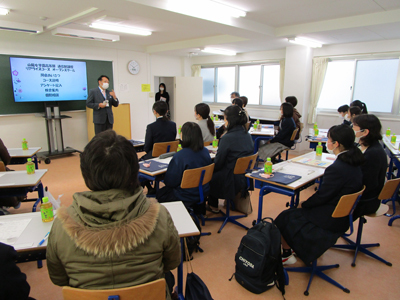 1月22日(土)「特別活動」で、NPO法人「SPICA」代表の山下育美先生をお招きして、講演会を行いました。講演テーマは「いのちの教室」と題して、犬や猫の殺処分の現状と根底にある問題について学びました。2006年の広島ドッグパーク崩壊の時の様子や、「ドリームボックス」と呼ばれる処分器で犬や猫が処分されていること、お店で売られている動物たちの過酷な現実など、目をそむけたくなる内容の話もありましたが、生徒達は皆、先生の話を真剣に受け止めました。正しい知識を身につけて立派な飼い主になることや、ボランティア活動に参加するなど、私たちにできることを考え行動していきたいものです。