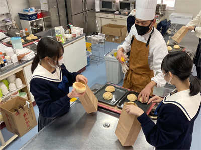 この日は「メロンパン作り」。生地を丁寧にこねて、ねかせて、おいしいメロンパンができました!!パン作りの基礎を学んだことで、自宅でも挑戦してほしいです。