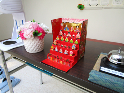 E棟入口には、小さなおひな様が生徒を迎えます。