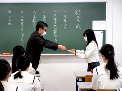 その後、終業式をし、各種検定合格者表彰も行いました。これで、2021年度の行事は全て終了し、三者面談を経て、来月から新学年がスタートします。春はもうすぐそこまで来ています。新たな気持ちで、新年度を迎えましょう!