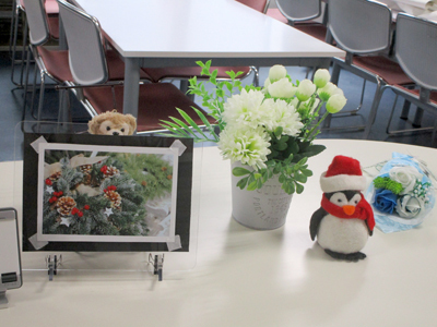 12月に入り、いよいよクリスマスシーズン到来です。リアライズの校舎も、可愛いもの好きの職員が着々と飾りを増やしています。月半ばには、1・2年生のクリスマス会が予定され、リアサポさんたちの準備も進んでいるようです。ぐっと寒くなってきましたが、楽しい行事を心待ちに元気に登校して来てほしいと思います。