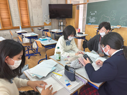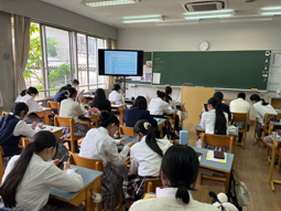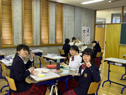 お昼休憩の時間楽しそうな声が聞こえてきたので教室をのぞいてみると、楽しそうにお弁当を食べているところに遭遇しました。友達と過ごす時間は笑顔が絶えないようです。午後からの授業もエネルギーをチャージして頑張ってほしいです。