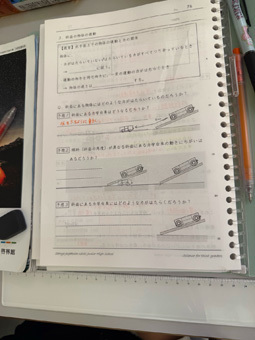 皆さんは坂道で体が坂の下に引っぱられるような感覚を覚えたことはありますか。今日の中等部3年生の授業では、斜面上にある物体がどのような運動をし、そこにどんな力がはたらいているのかを考えました。私たちは坂道で、本当に坂の下に向かっていくような力を受けているのでしょうか。次回の授業で、その正体を力のはたらきから考えていきます。
