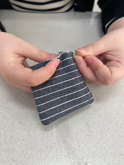 現在、中等部1年生の家庭科の授業では、被服の基礎について学んでいます。まずは基礎縫いの練習として、ドリンクを置くコースター作りに取り組んでいるそうです。裁縫に初めて挑戦する生徒も多く、針と糸を持つ手つきがまだぎこちない生徒もいれば、普段から慣れている様子で手際よく縫い進める生徒もおり、教室の中にはさまざまな姿が見られました。最初は戸惑いながらも、一針一針ていねいに縫い進め、少しずつ形になっていくコースターを見て、嬉しそうな表情を浮かべる生徒も。基礎縫いを通して、ものづくりの楽しさや、手を動かして仕上げる達成感を感じる、良い学びの時間となっているようです。