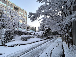 広島ではあまり見たことのない大雪の中、本校一般入試第1日です。玄関前を恐る恐る歩いてやってくるのは本校の教員です。雪に不慣れな私たちですが、なんとか無事に揃いました。大変な日になりましたが、受験生のみなさん、全力でがんばってください。心から応援しています。