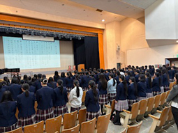 タイとインドから来日していた2名の留学生は、約2週間の短期留学をまもなく終えます。今朝の全校集会では、二人に修了証書が授与され、全校生徒に向けてお別れの挨拶がありました。短い期間ではありましたが、ホストファミリーやクラスメイトとの交流を通して絆を深め、互いの文化を理解し合う貴重な機会となりました。再び来日する際には、ぜひ本校を訪れてくれることを願っています。