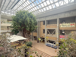こちらは職員室の前に置かれている机と椅子のセットです。休憩時間や放課後などに生徒同士で自習を行っていたり、教員が生徒からの教科の質問に答えるために使用するなど日々活躍しています。今朝は後期期末テスト2日目ということもあり、朝早くから登校した生徒たちがこちらで自習を行っていました。日々のこうした積み重ねの成果が、テストの結果に表れるといいですね。
