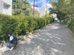 本校の正門を入ると、なだらかな坂になっています。その坂には「夢咲き坂」という名前がついています。今日は花の植え替え作業をしてくださっていました。本来なら写真の左に見えるプランターに綺麗な花が咲いています。この坂を毎日通る生徒は、綺麗な花が咲いているように、自分の夢に向かって綺麗な花を咲かせてほしいという意味が込められています。あなたも、この坂を通って自分の夢に向かって花を咲かせませんか。