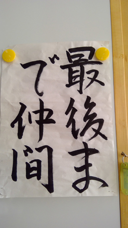 写真は、授業を担当している3年生の教室に貼ってあり、そのクラスの生徒が書いたもの。