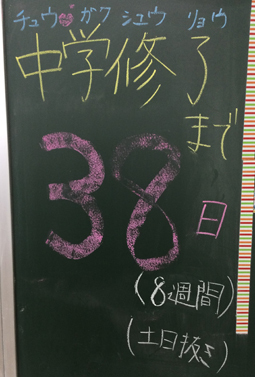 今日は朝から降雪の予報でした。午前中は晴れ間もありましたが、午後からみぞれ交じりの天候になりました。中等部校舎ではそんな天候にも負けず、元気な声が響き渡っています。そんな中、3年生の教室へ行ってみると、修了式までの『カウントダウン』が始まってり、もうそんな時期かと感じさせられました。中等部での残りの日々を悔いなく、仲間との時間を大切に過ごして欲しいと願っています。