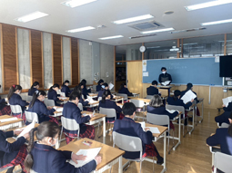 そんな中、3年生は中等部修了式まで1ヶ月を切り、高等部入学の準備も同時に進めています。今日は、「高等部進学へ向けた説明」を受けていたので、その様子を見に行かせてもらいました。全員が真剣なまなざしで説明を聞いており、高等部進学が待ち遠しい様子でした。中等部での残りの日々を頑張り、「いい終わり方」をして、高等部へ進学してくれることを願っています。