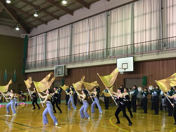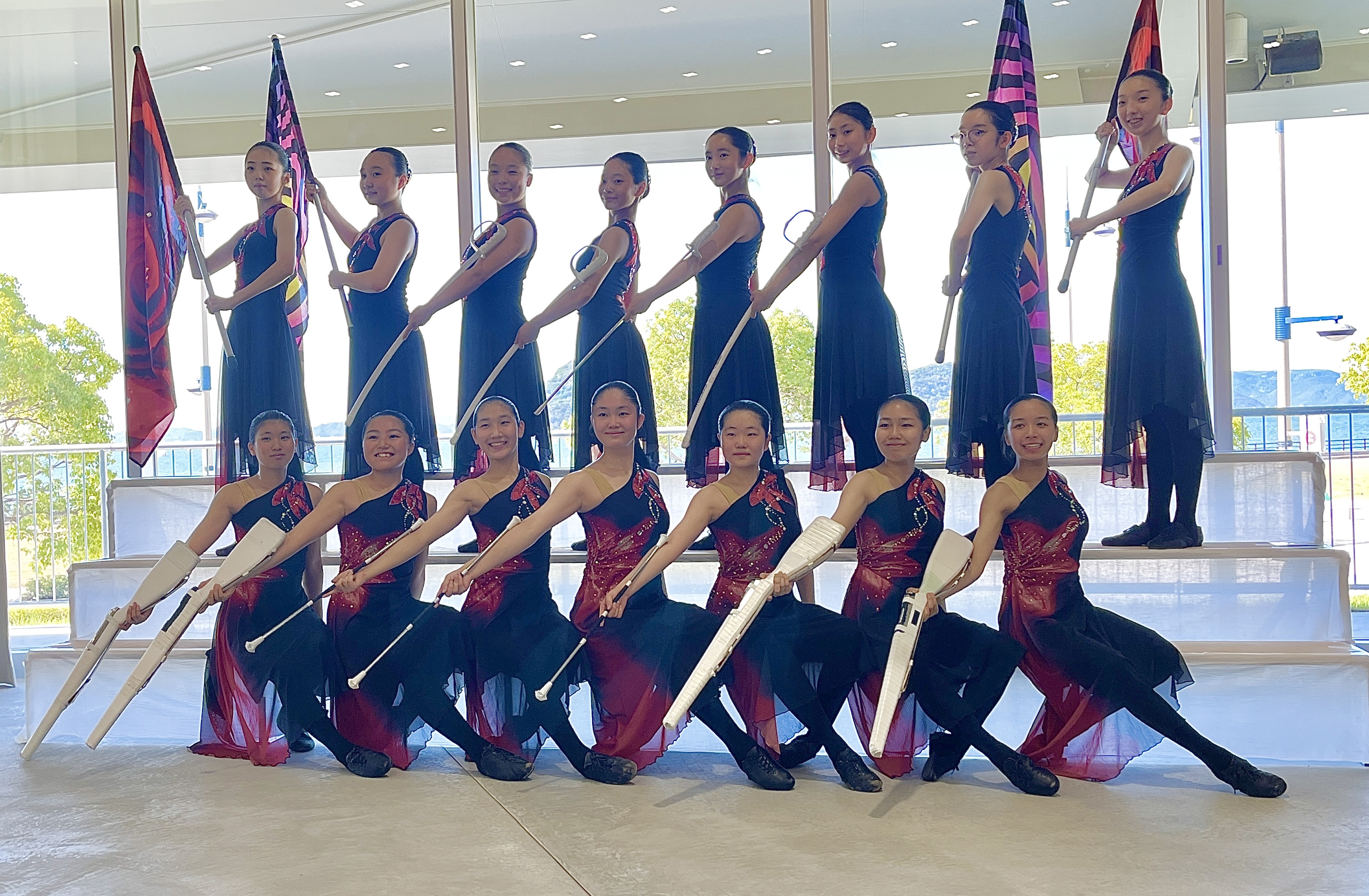 私たち、山陽女学園カラーガード部は、創部3年目の新しいクラブです。マーチングバンドのメンバーとともにマーチングバンド全国大会や全国各地の様々な大会に出場しています。また、カラーガードのメンバーだけでも積極的に地域のイベントや行事に参加しています。今年の2月に幕張メッセで開催されたカラーガード全国大会では念願の金賞をすることができました。
