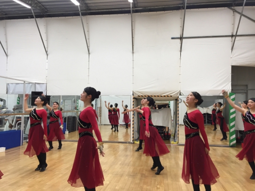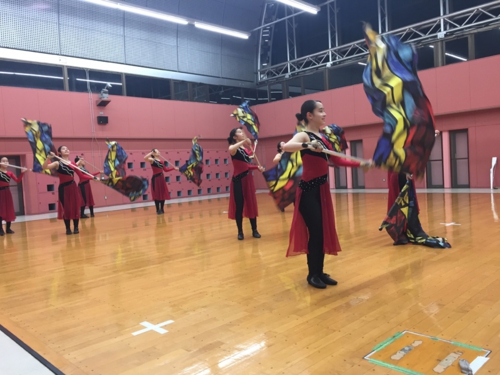 カラーガード全国大会。1年間練習してきた作品を披露する大会です。マーチングバンド全国大会と同様に、金賞を目指して頑張ってきました。初日はbumb東京スポーツ文化館で練習をしました。今年のテーマは「Blooming the bonds of affection」美しい音楽に乗って愛と絆を表現する作品です。表現が難しく非常に苦労した部分もありますが、部員で協力してきました。前日は最終確認。細かい動きや表現の部分をきっちり練習しました。
