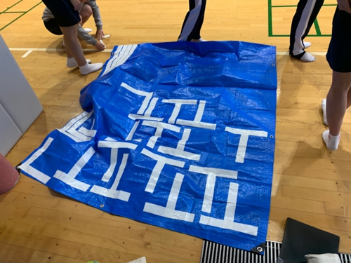 Bumb東京スポーツ文化館に到着してまず準備です。体育館にポイントを貼ります。