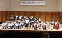 高校オーケストラの全国大会にあたる大会です。各地方から選抜されたオーケストラ部が集まり、それぞれの演奏を聴きあい評価しあいます。また、各校から選抜された人での合同演奏は、大会の名物。プロから指導をうけ、演奏を発表します。本校は連続で中国地区代表に選ばれています。