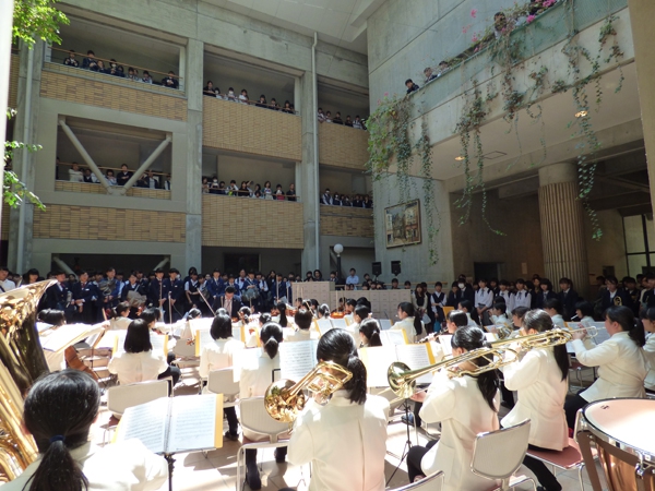 中等部・高等部合同のオープンスクール(OS)を開催しました。いつものOSと違い、カフェステージでの高等部OSのステージ発表を行ったのち、中等部ホールにて中等部OSのステージ発表を行いました。期末試験明け間もないことや、短い時間の間に移動をはさんで2つのステージで演奏するのは大変な面もありましたが、「生音にこだわりたい」思いで山女オケはその道を選びました。合宿での経験や、希望の進路をつかんだ高3生のサポートもあり、両ステージとも無事終えることができました。