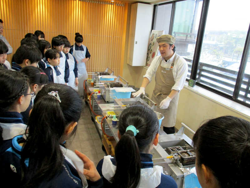 まずは、宮島伝統産業会館で、広島名物「もみじ饅頭」の手焼き体験をしました。係の方から作り方を教えていただき、こしあんとチョコレートの2種類を作りました。焼き立てのもみじ饅頭は香ばしく、みんなで美味しく食べました。