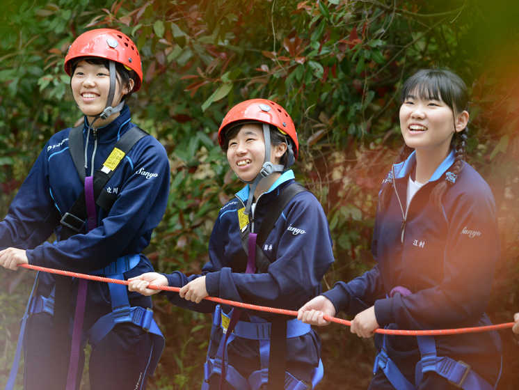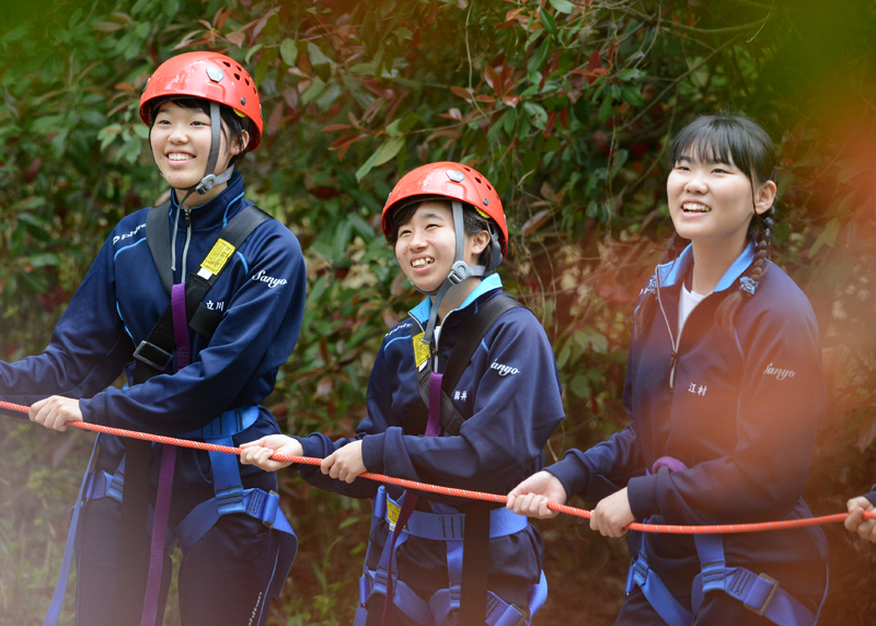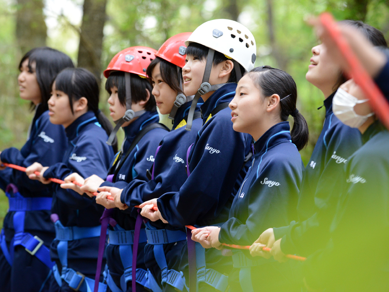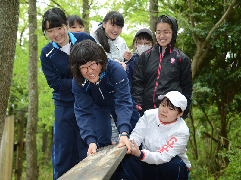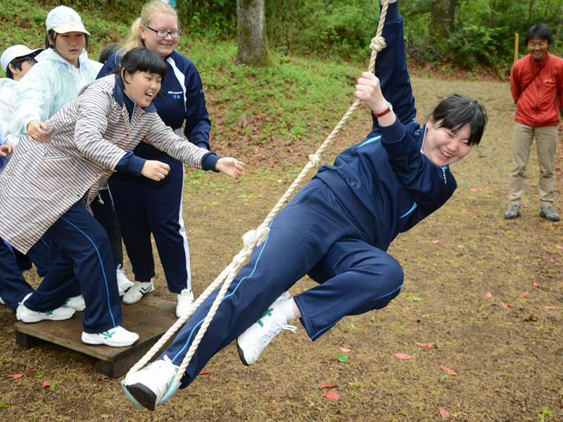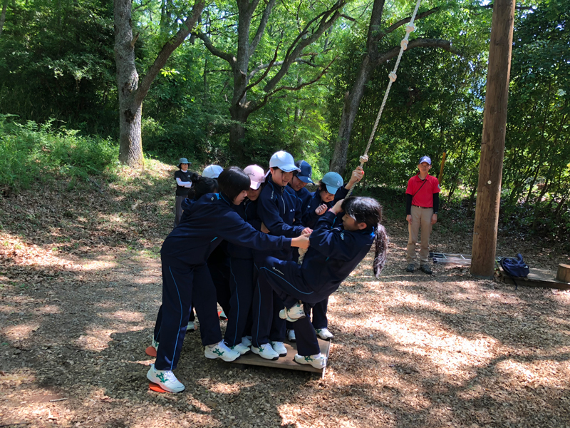 出来なかったら、なぜできないのか、もっといい方法があるのではないかなど話し合い、意見を出し合ってさらに良くしていこうという姿勢も増えていきました。晴れた日は野外の施設を使っての活動も行いました。初めは、いろいろと苦戦していましたが、苦労してクリアしたことでクラスの団結力は一層強くなったと思います。 研修で得られたこと、学んだことを、今後の学校生活に取り入れていってほしいと思います。