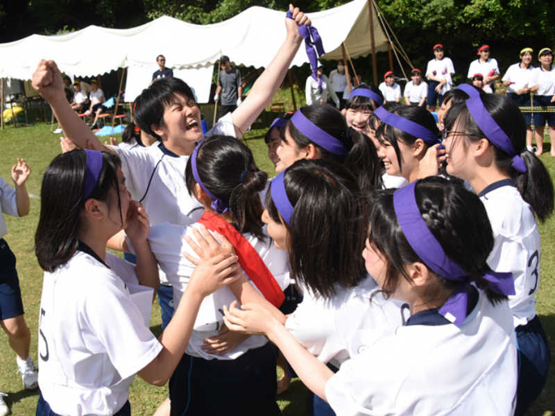 心配されていた雨もあがり、無事に体育大会を開催することができました。今年度は高等部生徒会が募集したスローガン「POWER OF GIRLS ~全力魂~」をモットーに全力で競技に取り組みました。「2人3脚」「スーパー玉入れ」など、どの競技においても驚異的な強さを見せた紫、その紫に負けまいと奮闘する黄と赤、少しでも点が追いつくように必死に戦う姿は、素晴らしいものでした。総合優勝は、やはり紫でした。