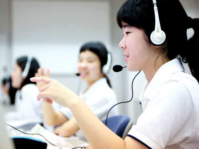 今日は、高校3年生の14人が受講しました。最初は戸惑ったり緊張したりしていた生徒たちもすぐに慣れ、わからない言葉は会話と同時進行で自ら調べたり、オンライン講師の先生に聞いたりしながら、楽しく会話をしていました。”自分の言葉で相手に伝えられる”ことに目を輝かせ、終了時間には笑顔で挨拶をしていた姿が少し誇らしげに見えました。