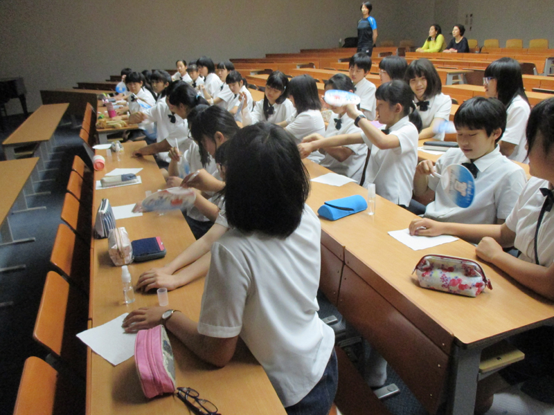 5月23日、中1、高1の生徒を対象に「下着講習会」を行いました。肌着には、体温調節を助け、肌を守る役割があります。その上オトナのマナーとして必要なものでもあります。これからの季節、汗をかきやすくなる中で、汗による皮膚トラブルを防ぐためにも、自分に合った肌着を身につける必要があります。清潔で気持ちの良い毎日を送れるように、毎日の肌着を見直す機会を作りましょう。