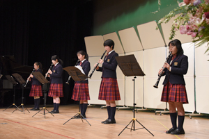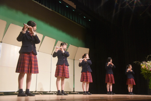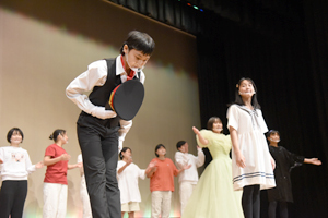 本校オリジナルの総合学習プログラム「個性輝き学習」の1年間の成果を発表する「個性輝き学習発表会」を開催しました。1年生は7つの楽器に分かれ演奏、2年生はミュージカル・アニメーション制作の2つに分かれて、3年生はグループごとに研究してきたテーマを英語でそれぞれ発表しました。