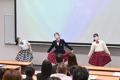 そして、急遽行いました生徒の手作りによる「制服ファッションショー」では、緊張しながらも優雅に歩き、ご来場された方からたくさんの拍手をいただきました。