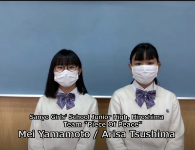 国内外の学生と英語で議論することにより、英語で発信する力を培うことができるのはもちろんのこと、SDGsへの理解をより深め、自分たちにできることを再考する機会となりました。對馬さんと山本さんのプレゼンテーションでは、平和教育の重要性と、平和教育推進のためのイベントについて英語で説明をしています。
