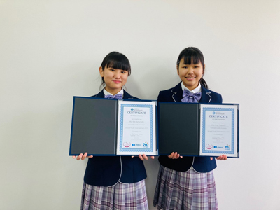 公益財団法人ユネスコ・アジア文化センター(ACCU)/ フジテレビジョンが主催する、「2021Voice of Youth Empowerment サステナ英語プレゼンテーションチャレンジ」に2年1組對馬有彩さん、山本芽依さんが出場し、その模様がオンラインで生配信されました。この大会は、中高生が「持続可能でよりよい世界とはどんな世界か?」「また今、どんなアクションを起こしているのか?」について世界に発信する大会で、全国120チームの中から大会に参加する6チームに選ばれ、SDGs達成に向けた取り組みについて、8分間のプレゼンテーションの後、他チームとディスカッションを行いました。