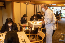 テーブルマナー研修では、レ・クロにご協力いただき、店内見学のみならず、講話もいただきました。