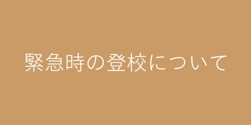 *居住地域および登校途中地域に危険な状態(路面冠水・崖崩れ・路肩崩れ・浸水・堤防の決壊など)があり、登校が危険であると保護者が判断した場合や、自治体からの避難指示や避難勧告が発表された場合などは、安全を最優先に考え、保護者からの連絡で公認遅刻・公認欠席を認めるので、決して無理をして登校しないこと。