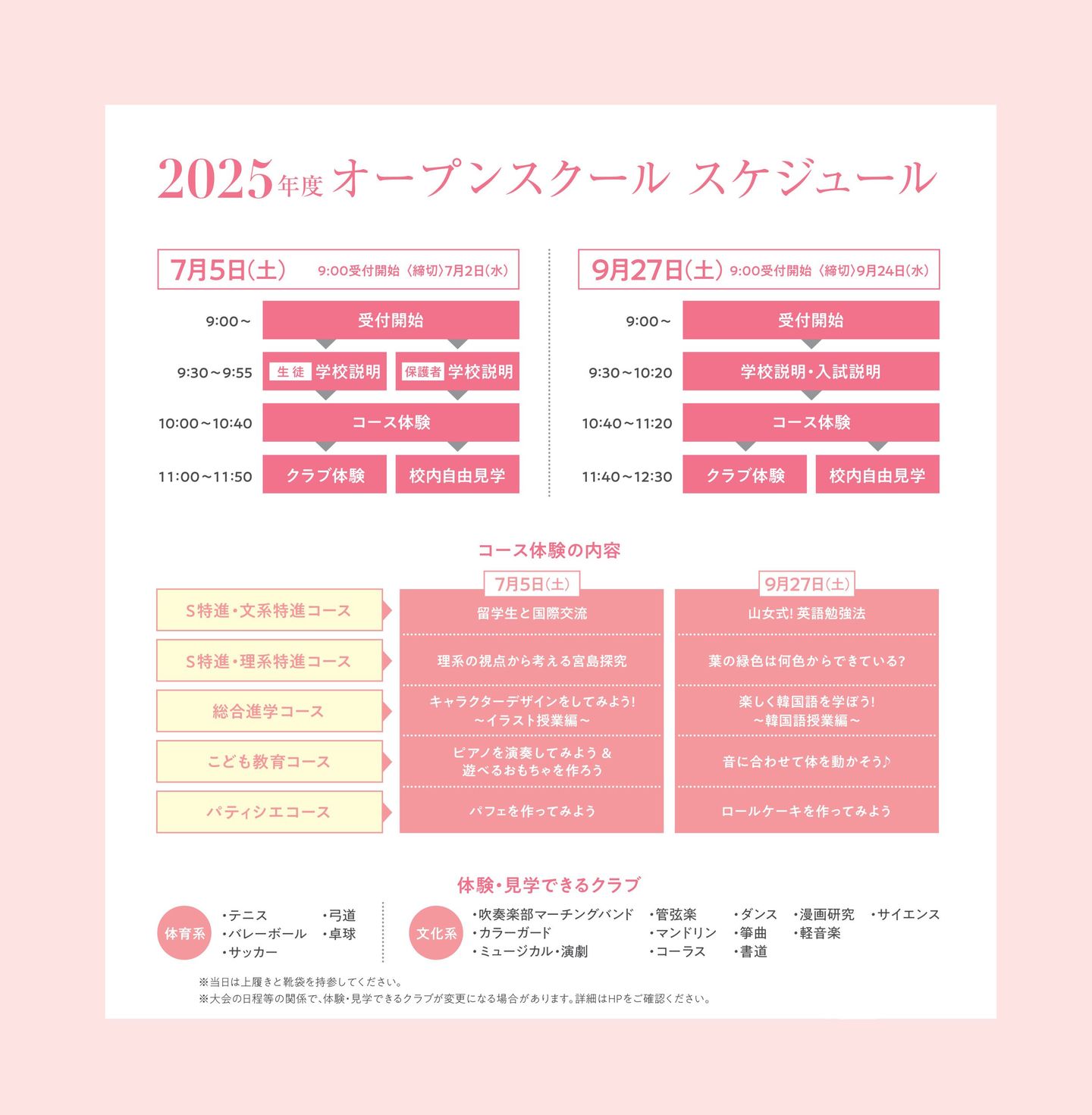 クラブ体験を希望される方で楽器をお持ちの方は、当日ご持参ください。
