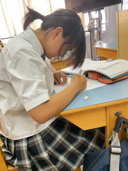 6月に入り、いよいよ前期中間試験が近づいてきました。写真は、テスト範囲の単元を復習している生徒の様子です。3年生は今年度初めてのテストです。しっかりと計画を立てて勉強をし、良い結果を残せるようにがんばりましょう!