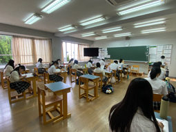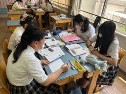今日は4時間に1年生のクラスを覗いてみました。現代の国語の授業をしており、“羅生門”についてグループで分析していました。羅生門がどういう状況かという質問に対してグループで様々なワードがでており、1人1人が考え、話し合いながら分析していました。入学して3ヶ月が経ちますが、授業にもみんなが積極的に参加して取り組めるようになってくれることを願っています。