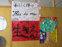 中等部の教室の外には、各クラス個性あふれる作品が飾ってあります。それぞれクラスの色が出ており、見ていてとても楽しくなります。保護者の皆様も、今週の授業参観の際にぜひご覧ください。