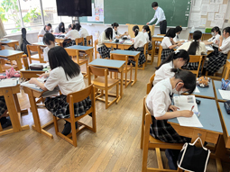 中等部2年生は、英語の授業で、チャリティーについてのリスニングをしていました。真面目に取り組んでいました。今後も、英語に慣れ親しんでもらえたらいいと思います。よろしくお願い致します。