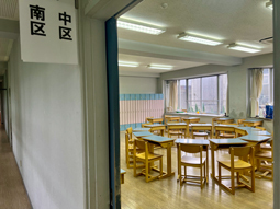 休校日のように人気の無い、静かな校舎です。ですが、渡り廊下に出れば、体育館からは体育祭が行われているかのような、テンポのよい音楽や歓声が聞こえてきます。今日は午前中に体育祭の予行を行い、午後からは授業を行います。生徒も教員も熱心に進行のチェックや競技を行っていました。どんな体育祭なのかは、来週の本番をお楽しみに!