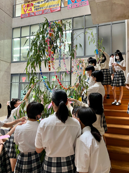 今日は中等部全体で七夕の装飾を行いました。生徒一人ひとりが楽しそうに、それぞれの願いを込めた短冊を飾っていました。この時間が生徒にとって楽しい思い出として残ってくれたらと思います。