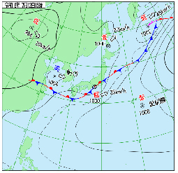 昨日までの雨が嘘のように、今日は爽やかな五月晴れです。今では5月の清々しい晴れを指す言葉としても使う「五月晴れ」ですが、もともとは梅雨時に見られるこのような晴れ間を指す言葉です。ちなみに、気象については中学2年生の理科で学びますが、春から梅雨を経て、梅雨前線が北上すれば梅雨が明けて夏になります。つまり、梅雨前線より北側には春の空気、南側には夏の空気があって、その境目が梅雨前線なのです。今日は見事に広島の南側に前線があります。夏が来るのはまだもう少し先のようです。