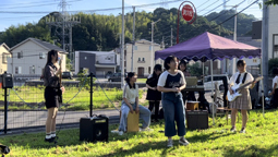 本学園にほど近い佐方川桜並木にて、『SAGATA PLUGLESS STREET』が開催されました。本校からは軽音楽同好会と管弦楽部が参加し、ストリートライブを行いました。スタート直後は、人通りも疎らでしたが、音を出すにつれて観客の数も増え、徐々に賑わってくる様子が印象的でした。ホールやスタジオで演奏するのと屋外で演奏するのでは、音の響き方や聴衆の反応の見え方などが異なり、とても貴重な経験となりました。