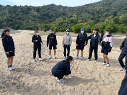 中等部生は、全員で宮島にある入浜へ行きました。海岸沿いや森の中の道を抜け自然を肌で感じながら歩き、入浜ではレクリエーションを通して学年関係なく親睦を深めたり、砂浜に打ち上げられたゴミ拾いをしました。