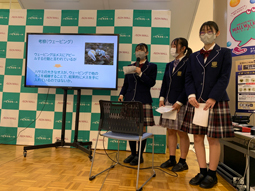 11月9日土曜日、イオンモール広島祇園で開催された「ひろしま海の森づくりプロジェクト in イオンモール広島祇園」で、特進コース1年生の3名が、「ハクセンシオマネキの研究」の口頭発表を行いました。STU48の2名によるMC、そして大勢の来場者、という緊張感MAXの中で堂々と発表することができました。ハクセンシオマネキのウェービングという行動はメスをおびき寄せるためといわれていますが、実際には、オス同士でマウントを取り合う様子も観察されました。今後、ウェービング行動については、さらにデータを集めて考察する予定です。