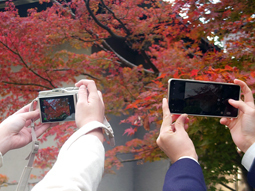 今日の放課後、写真同好会で紅葉の撮影練習を行いました。今年は例年より紅葉が遅く、広島の南部ではようやく見頃になるようです。部員はホワイトバランスの設定を工夫したり、太陽の角度などに気を付けたりして美しく撮れるよう頑張っていました。