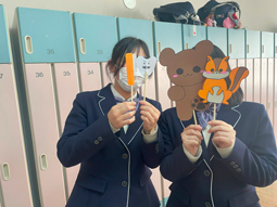 2年生のこども教育コースは、1か月後にある検定に向けて勉強をがんばっています。写真は、保育の授業で作ったものです。ペープサートではそれぞれの個性が出ており、とても楽しい作品になっていました。自分らしさを出しつつ、検定でも力を発揮してほしいです。