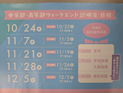金曜日の夕方に、ウィークエンド説明会を開催します。学校説明、入試説明からのご参加や、個別相談のみのご参加も可能です。入試関連以外にも、さんじょの高校生活や部活についても、個別にご質問をお受けいたします。気になることは是非この機会にお気軽にご相談ください。