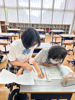 本日の放課後、教室をのぞいてみると明日の学力向上テストの勉強をしている生徒たちを発見しました。明日のテストは英語です。