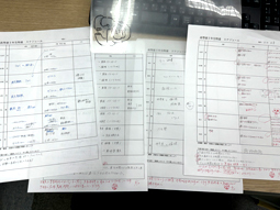 高3特進コースは毎月、模擬試験を受験します。受験に向けて大切なのは自分で自分の時間を上手に活用することではないでしょうか。ずいぶんレトロではありますが、1週間の学習状況を1枚のシートに「見える化」する取り組みを行なっています。睡魔に負けて寝てしまったこと、毎日の習慣にできたこと、すきま時間の活用方法など様々なコメントが残されています。試行錯誤しながら頑張ってほしいです。