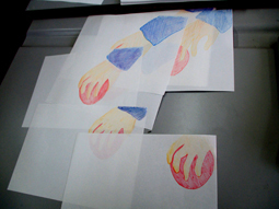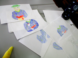 今日は総合探究マルチメディアコースの授業をのぞいてみました。白い紙が積み上げられた机の上に、すでに描かれたイラストが20枚も並んでいます。これらの絵を撮影し、ストップモーション動画(コマドリ動画)にすることがこの授業の目標です。みなさんはここに描かれている人物に見覚えありませんか?「りんご」もそのヒントです。中等部では総合的な探究の時間を個性輝きと呼んでいますが、まさにオリジナルな観点で選ばれた主題だったので、思わずなるほど!でした。どんな物語が紡ぎ出されるか、完成後の上映を楽しみにしています。