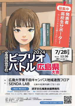 明日、ビブリオバトル校内選考が行われます。今年度の出場者は4名で、1人2分の発表です。この校内選考を勝ち抜いた1名が、広島県大会へ出場します。また、広島県大会では、本校から6名の高校生サポーターが参加し、受付や司会などスタッフとして大会に携わります。明日の校内選考も広島県大会も、生徒たちの活躍に期待です。