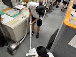 職員室掃除の担当は、3年生です。掃除の仕方もとても丁寧で、コピー機もティッシュでホコリをとってくれています。掃除した後の職員室はとてもきれいで気持ちが良いです。感謝の気持ちはいつになっても忘れていけないなと改めて感じました。